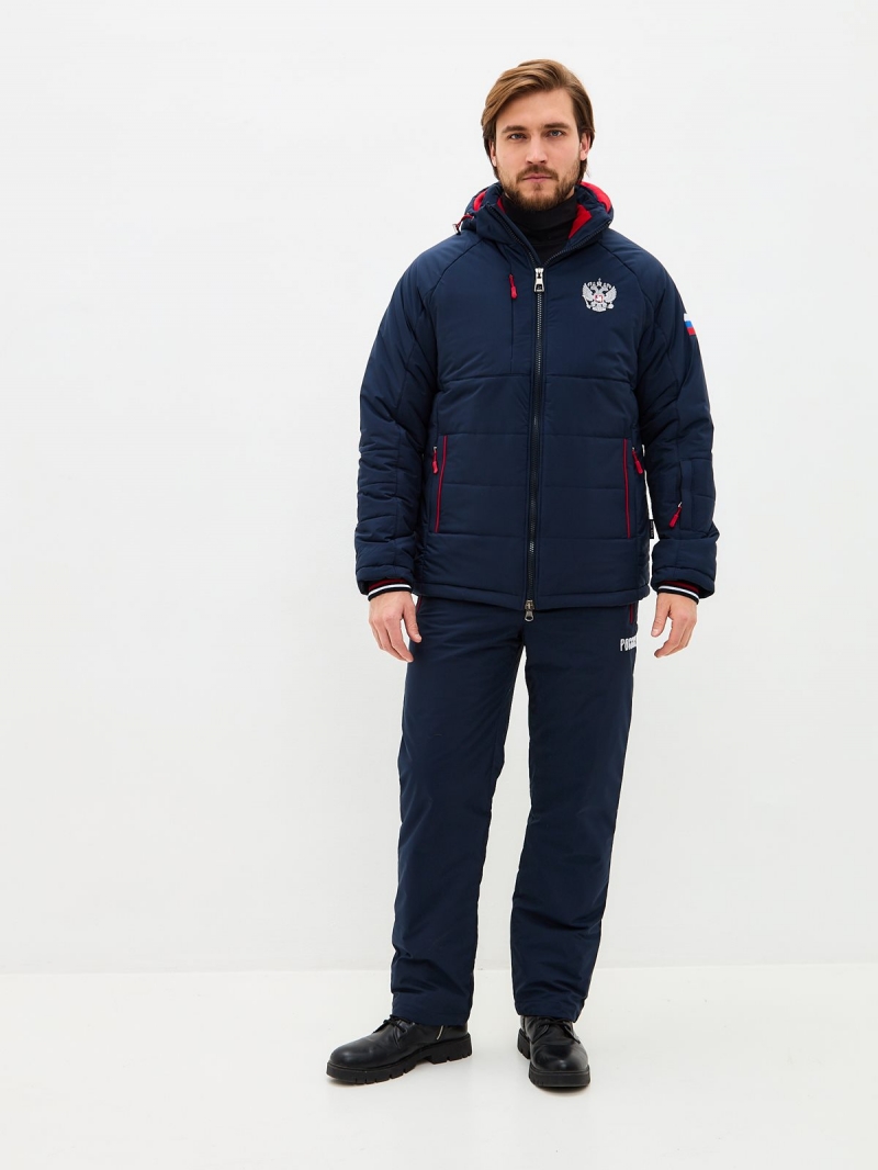 Комплект состоит из утеплённой куртки и брюк, выполненных из прочной водоотталкивающей ткани с мембранным покрытием. Этот спортивный костюм России выдерживает морозы до -20°C, защищая от ветра, снега и влаги. Подходит как для города, так и для активного отдыха..